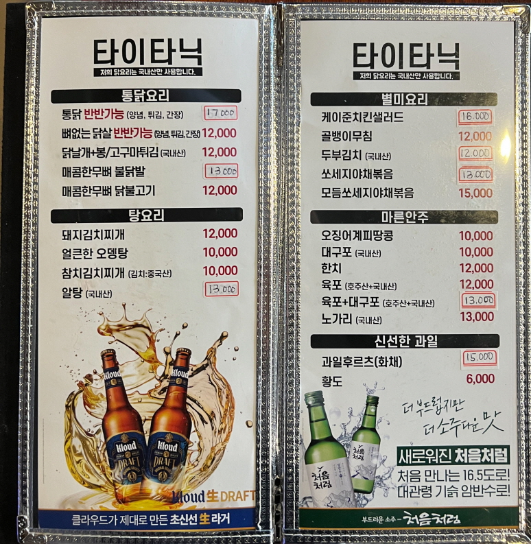 `타이타닉` 은 2층에 위치하고 있는 카페형의 닭똥집 전문점입니다.
