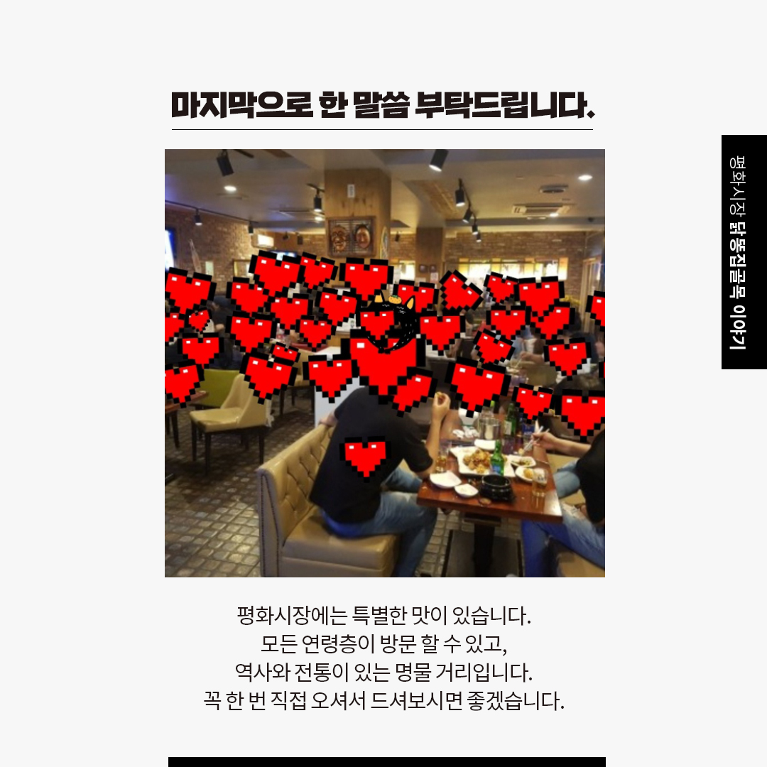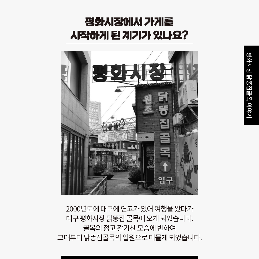 대구평화시장 닭똥집골목 홈페이지(이하 홈페이지)는 개인정보보호법에 따라 이용자의 개인정보 보호 및 권익을 보호하고 개인정보와 관련한 이용자의 고충을 원활하게 처리할 수 있도록 다음과 같은 처리방침을 두고 있습니다.