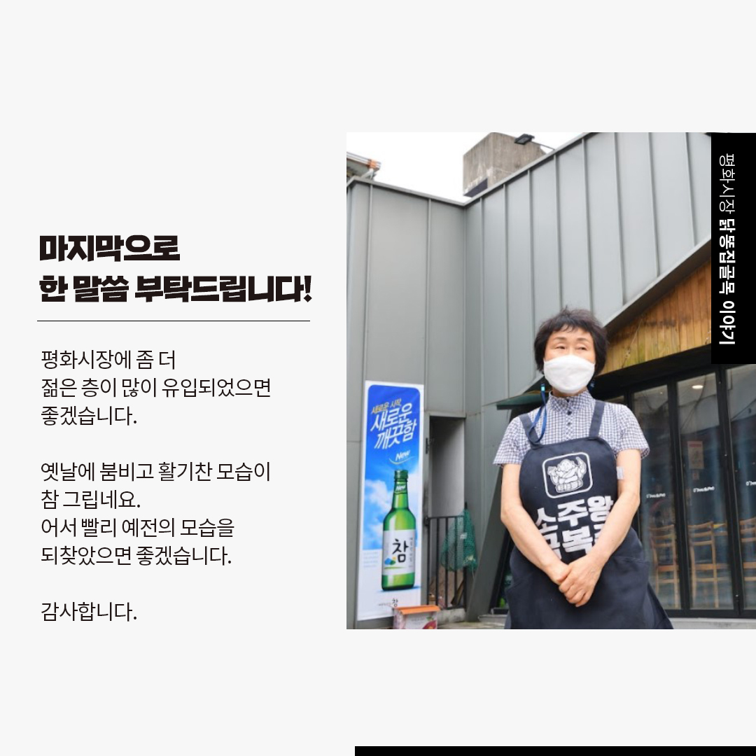 대구평화시장 닭똥집골목 홈페이지(이하 홈페이지)는 개인정보보호법에 따라 이용자의 개인정보 보호 및 권익을 보호하고 개인정보와 관련한 이용자의 고충을 원활하게 처리할 수 있도록 다음과 같은 처리방침을 두고 있습니다.