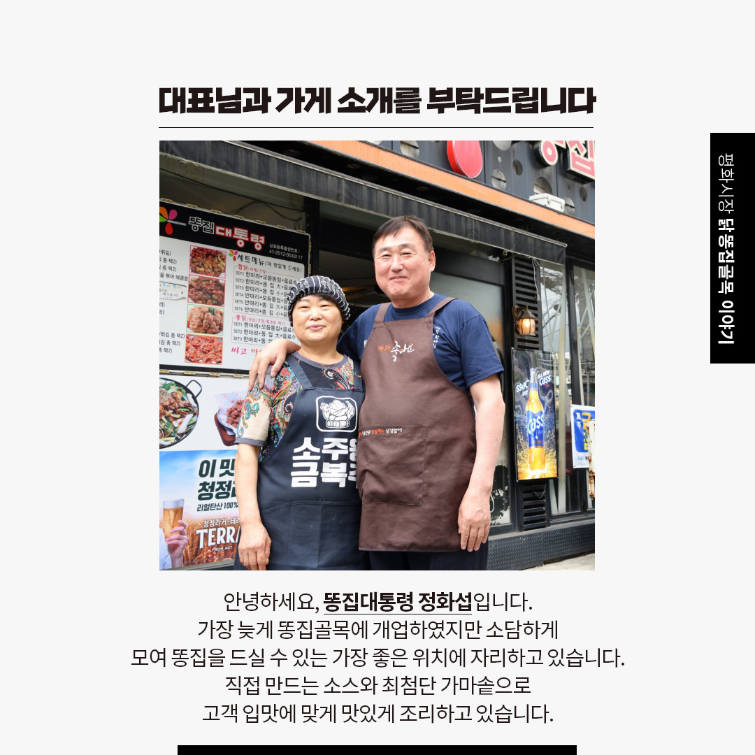 `똥집대통령` 은 시원한 콩나물 뚝배기 형태의 찜닭과 똥집이 맛있는 집.